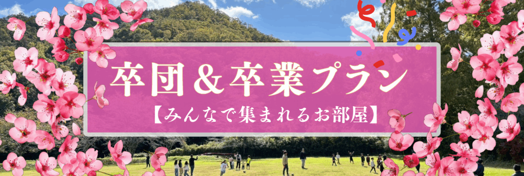 もうすぐ卒業、卒団。毎日当たり前のようにいた仲間と、同じ場所で過ごす時間は、これが最後かもしれません。食事会をしたり、スライドショーを流したり、写真を撮ったり、語り合ったり—。 決まった過ごし方はなくていい。「自分たちらしい締めくくり」を自由につくれる、冬・春限定の特別プランです。自然に囲まれた静かな環境だからこそ、いつものメンバーなのに、少しだけ特別な時間が流れます。