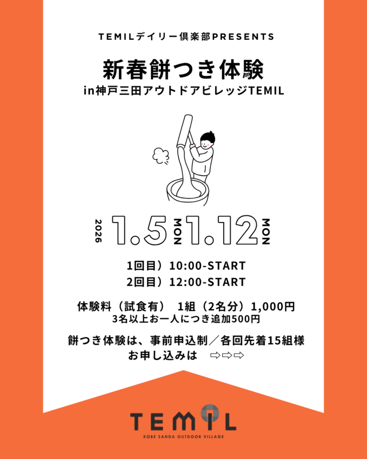 2026年1月12日(月・祝)10-14時 《餅つき①10時~②12時〜 》各回先着15組